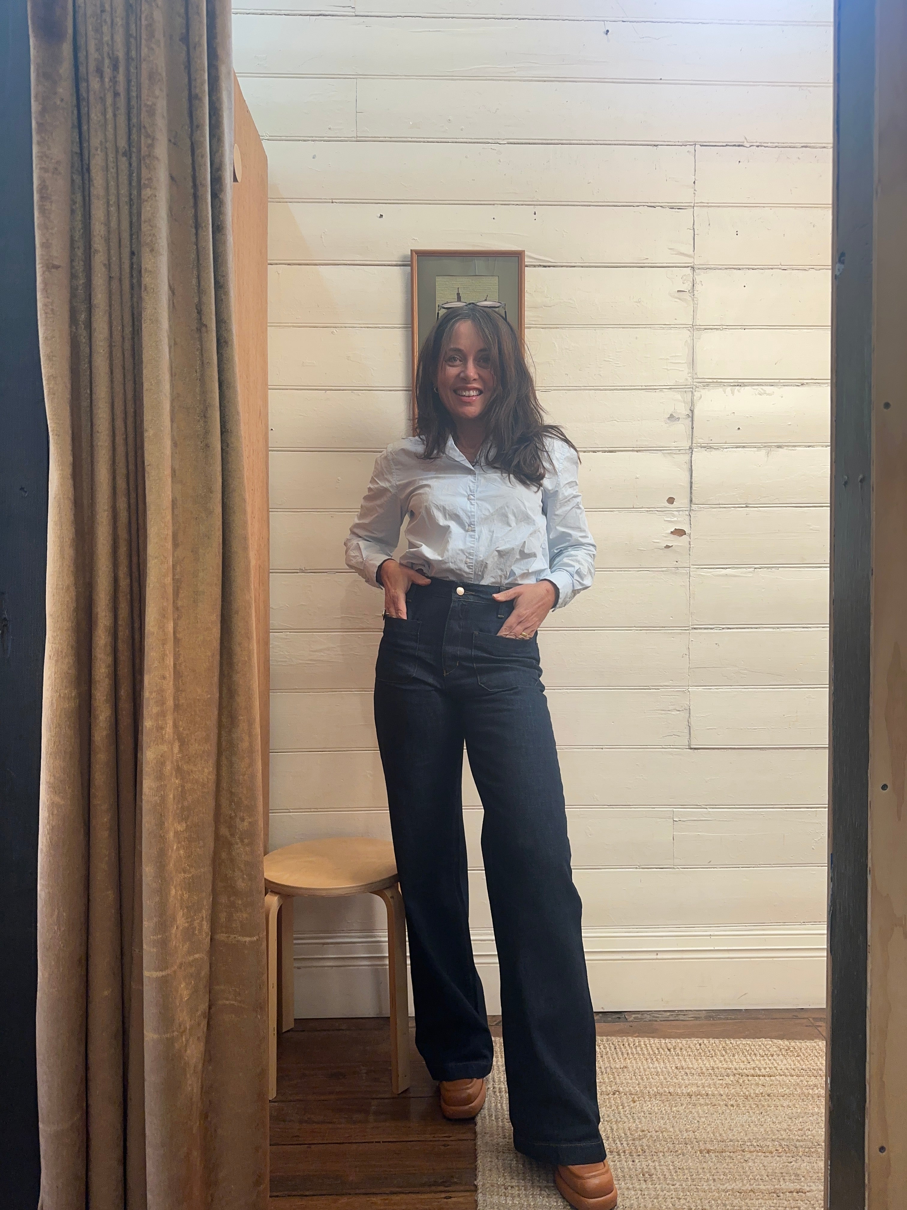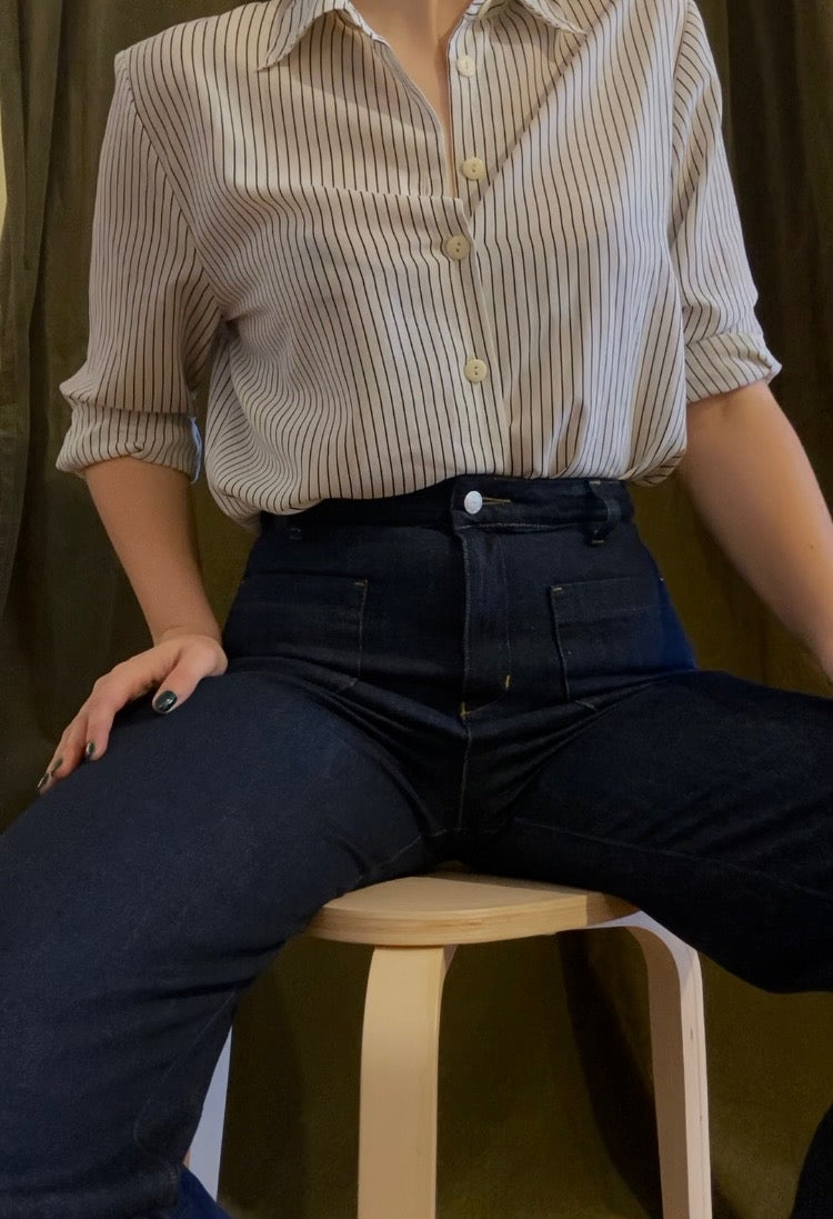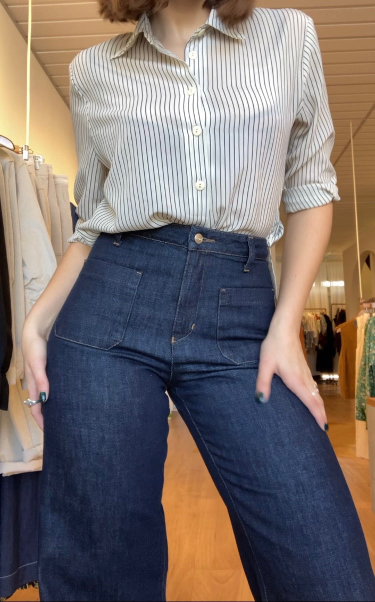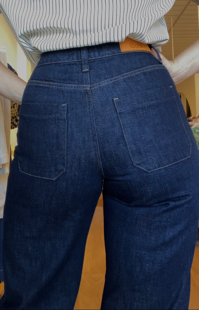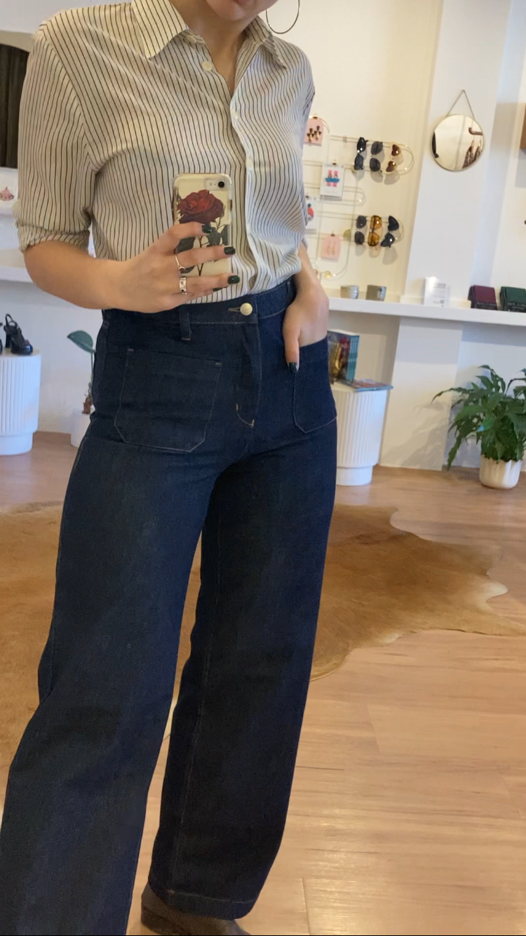 Timeless Style, Ethical Heart: Meet our Margot Denim Jean – retro-inspired in a classic dark wash perfect for dressing up with heels or going casual with sneakers. Australian-made, and ethically accredited. Feel the nostalgia, embrace the future.